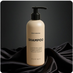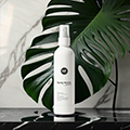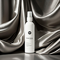 Prompt: black tabletop with soft reflections, (monstera leaf) behind the product, soft marble wall, soft natural light, minimalist realistic indoor scene, shallow depth of field - Name: Silk