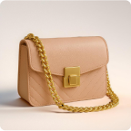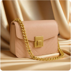 Prompt: On soft beige satin fabric with natural folds, background also draped with matching light beige satin fabric, soft natural lighting, minimal and high-end scene, clean and realistic. - Name: Bagstage