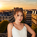 Prompt: standing on a small Parisian balcony with wrought iron railing, Haussmann buildings and skyline in the background, golden hour lighting - Name: Plant