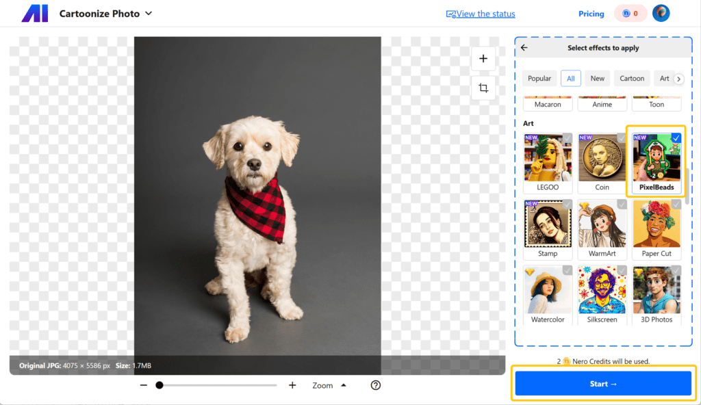Transform your photos into viral Pindou-style Perler bead art instantly with Nero AI Photo to Cartoon.