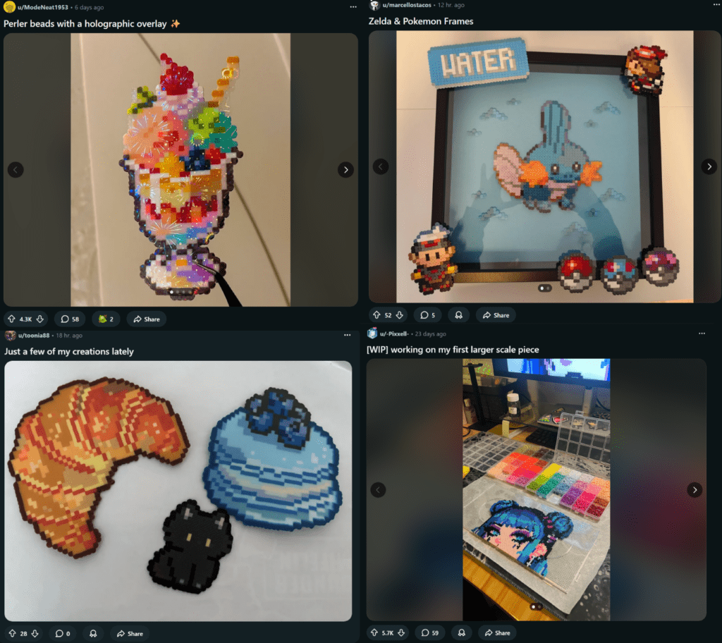 The concept originated in the 1970s when Swedish engineer Gunnar Knutsson discovered this plastic bead concept and patented it as “Nabbi Beads” in 1971. By the 1980s, American company Perler brought the patent to North America and transformed it into an educational toy for children. What started as a rehabilitation tool for nursing homes and an educational activity for kids has evolved into a full-blown stress-relief phenomenon for young adults.