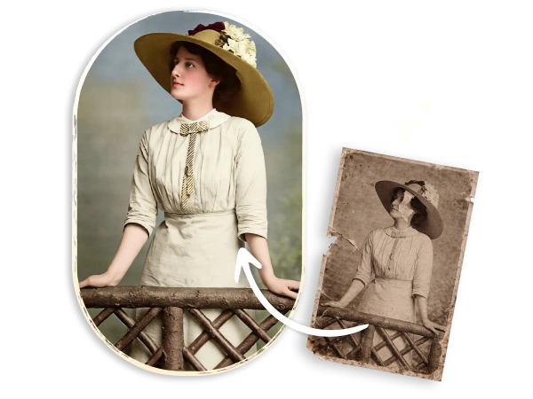 Pomocí naší umělé inteligence můžete během několika minut opravit škrábance, přidat barvy a vylepšit obličeje na starých fotografiích.